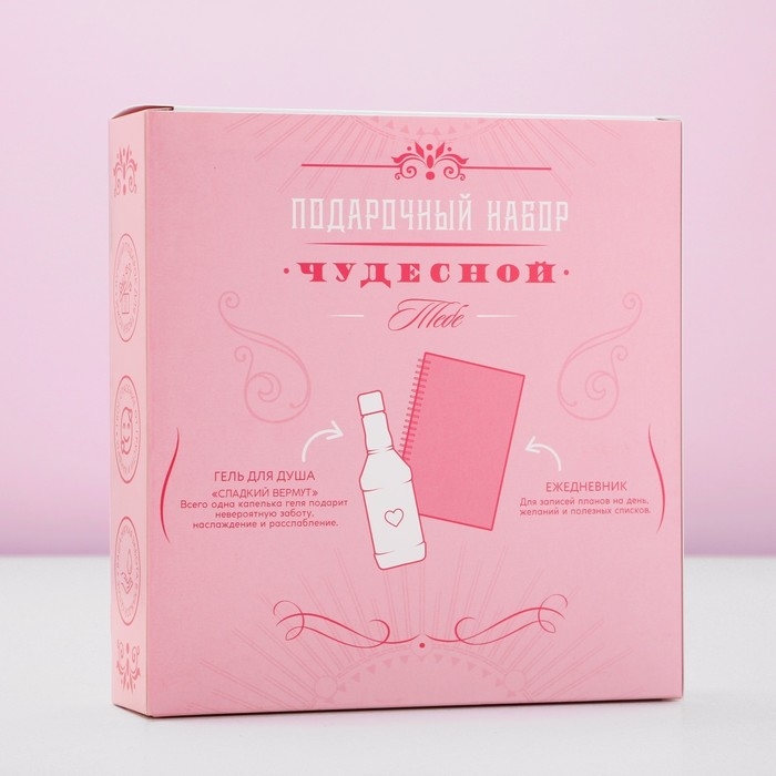 Новогодний подарочный набор косметики «Порадуй себя!», гель для душа во флаконе виски 250 мл и ежедневник, Новый Год