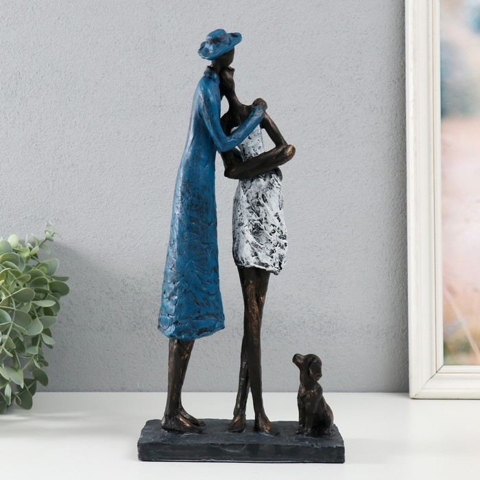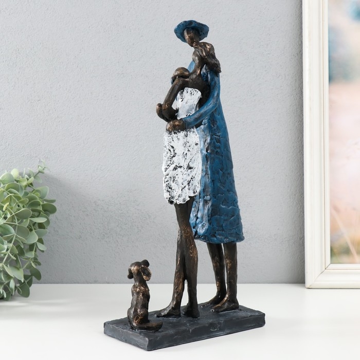 Сувенир полистоун "Парочка на прогулке с собакой" под металл 16,4х8х34,7 см