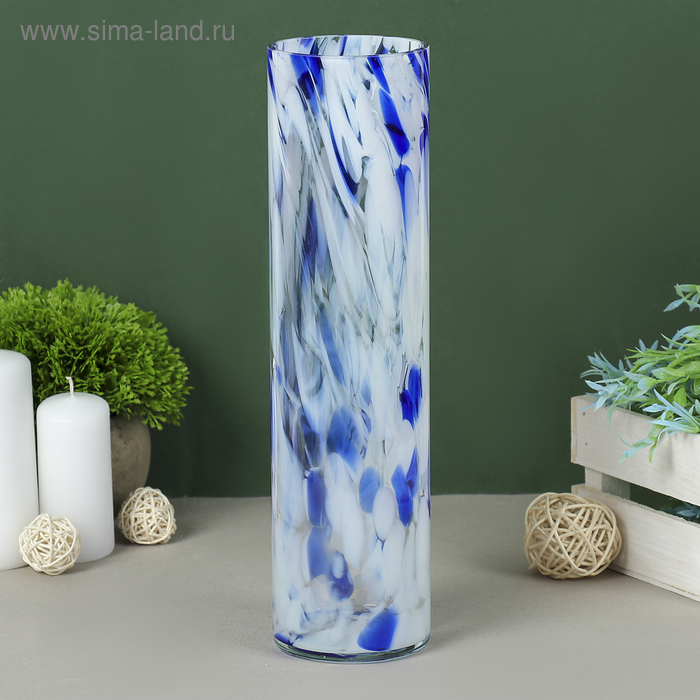 Ваза "Цилиндр" 8х30 см, бело-синяя