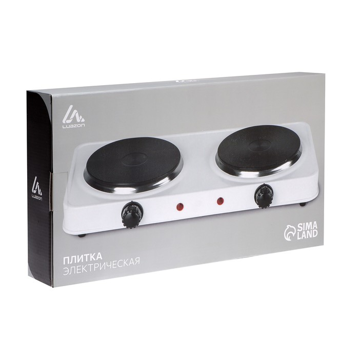 Плитка электрическая Luazon LHP-003, 2 конфорки, 2000 Вт, нагреватель спираль, белая