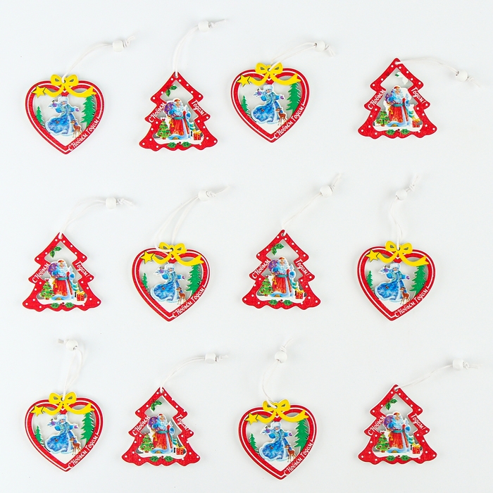 Набор новогодних подвесок, 12 шт., МИКС