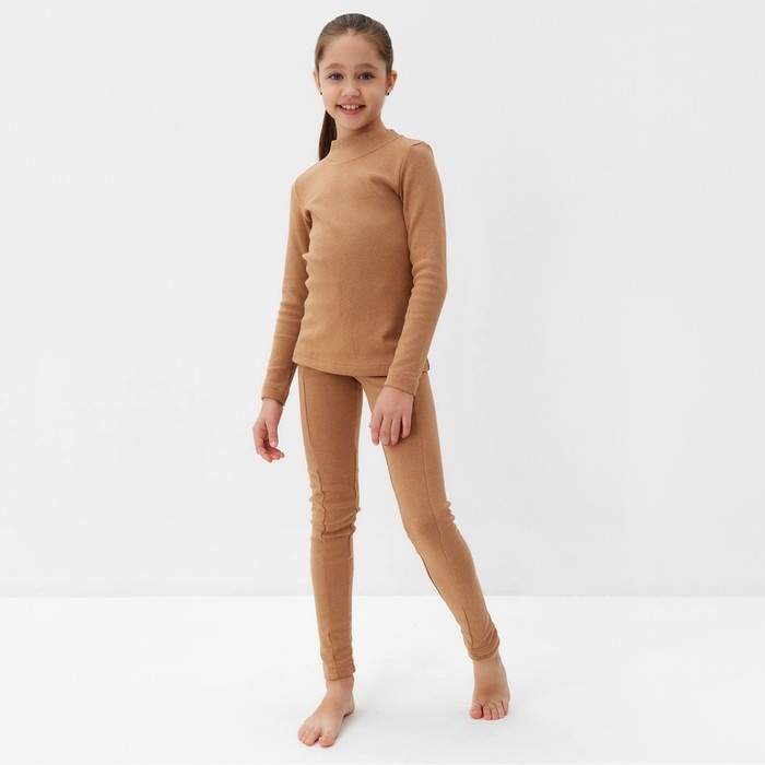 Термобелье для девочки (лонгслив, легинсы) цвет бежевый, рост 128