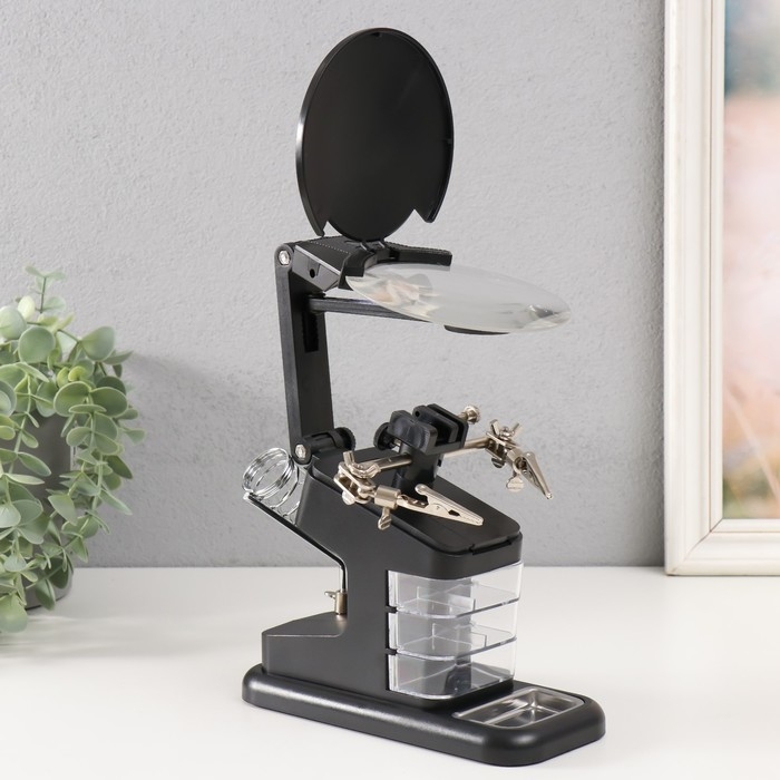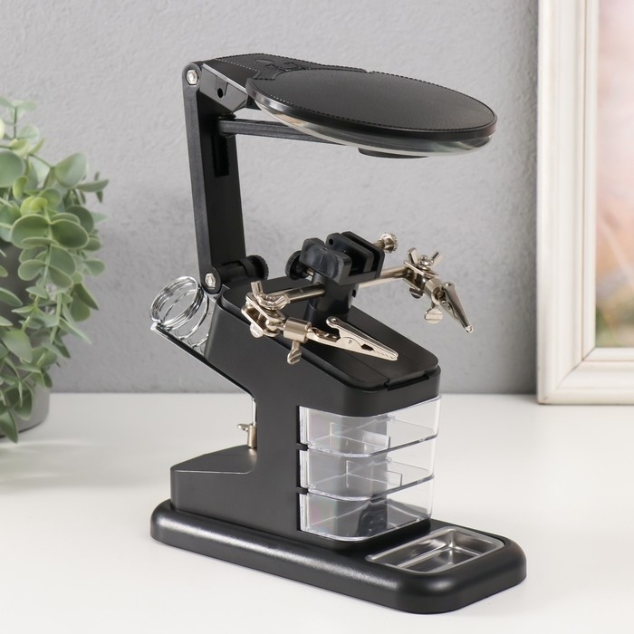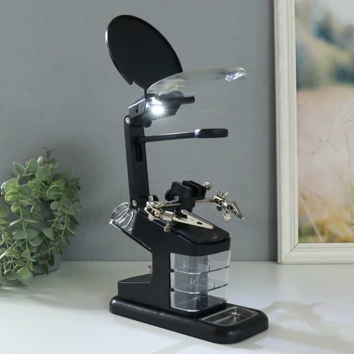 Лампа-лупа набор с увеличительным стеклом х2,5 х4,5 х25 LEDx2 от LR44 чёрный 18,5х11,5х23 см