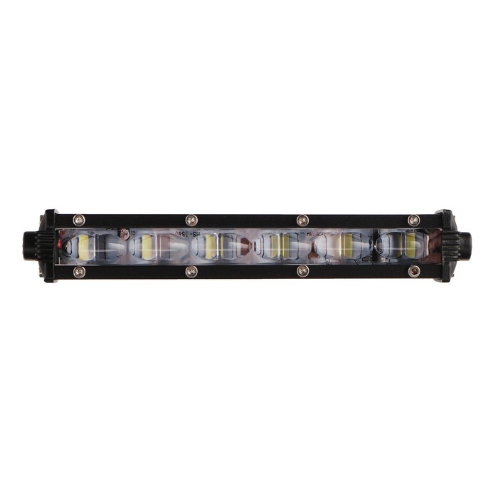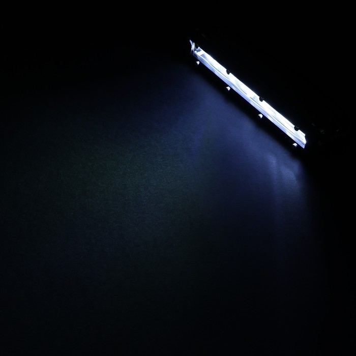 Это светодиодная балка длиной 18,5 см, предназначенная для использования в легковых автомобилях, грузовиках и внедорожниках. Она может работать с напряжением сети от 9 до 32 В и имеет общую мощность 18 Вт. Световой поток данной модели составляет 720 люмен, а длина провода — 30 см. Цвет освещения — холодный белый.