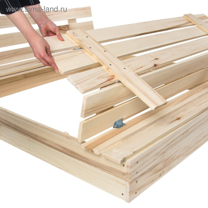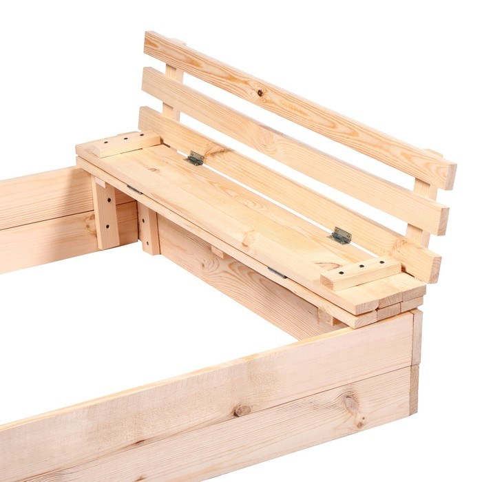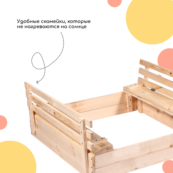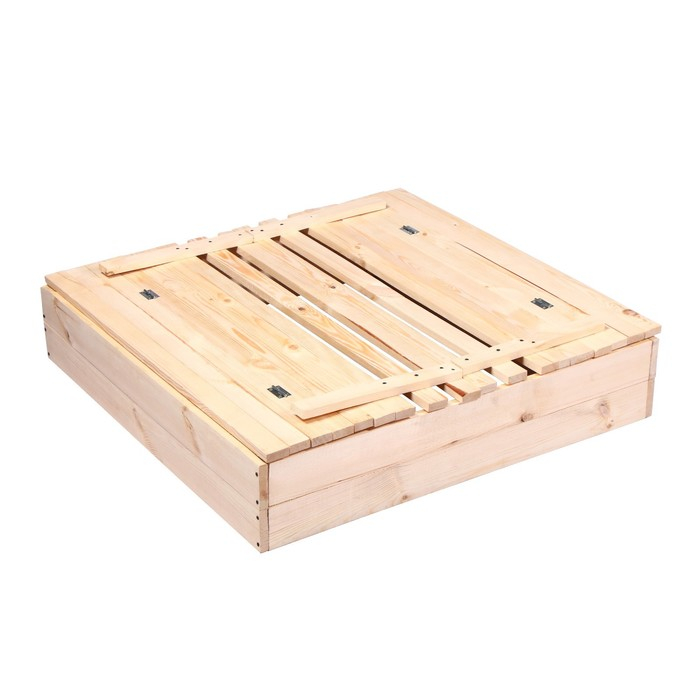 Песочница детская деревянная, с крышкой, 100 × 100 × 18 см, без покраски, лавочки (2 шт.), Greengo