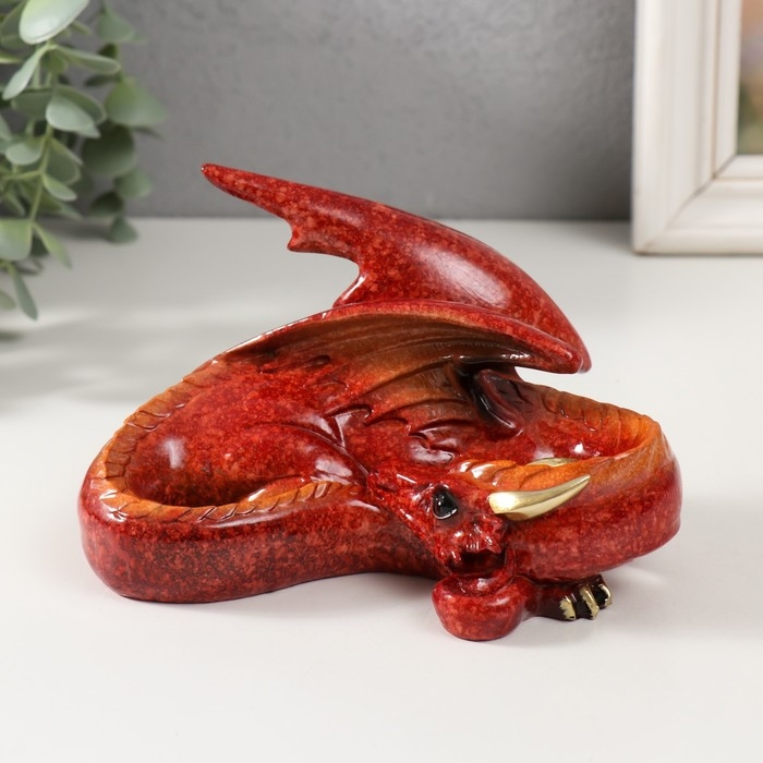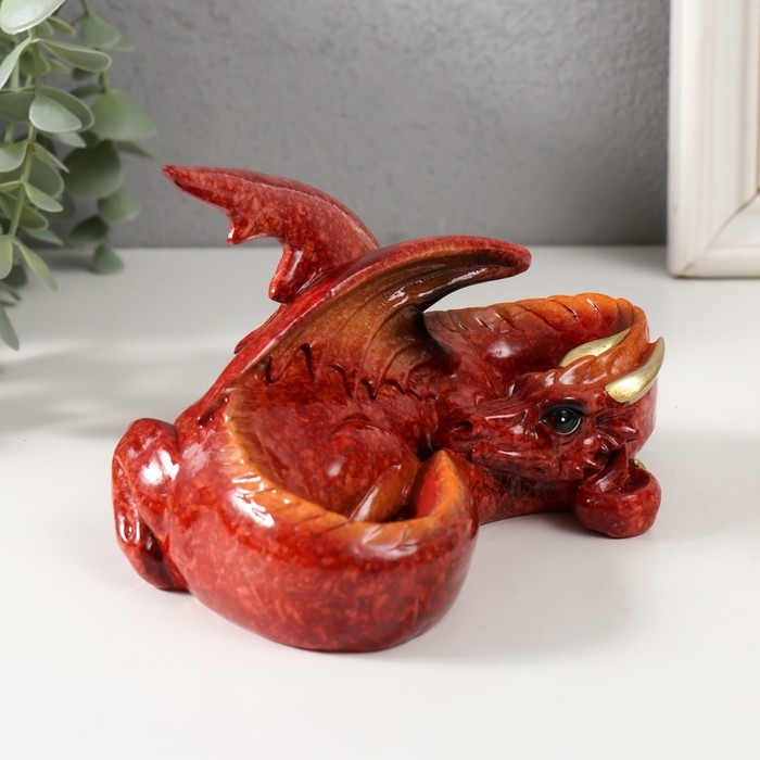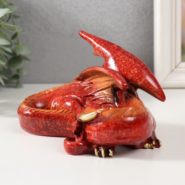 Сувенир полистоун лак "Красный дракон свернулся колачиком" 15х10,5х10 см
