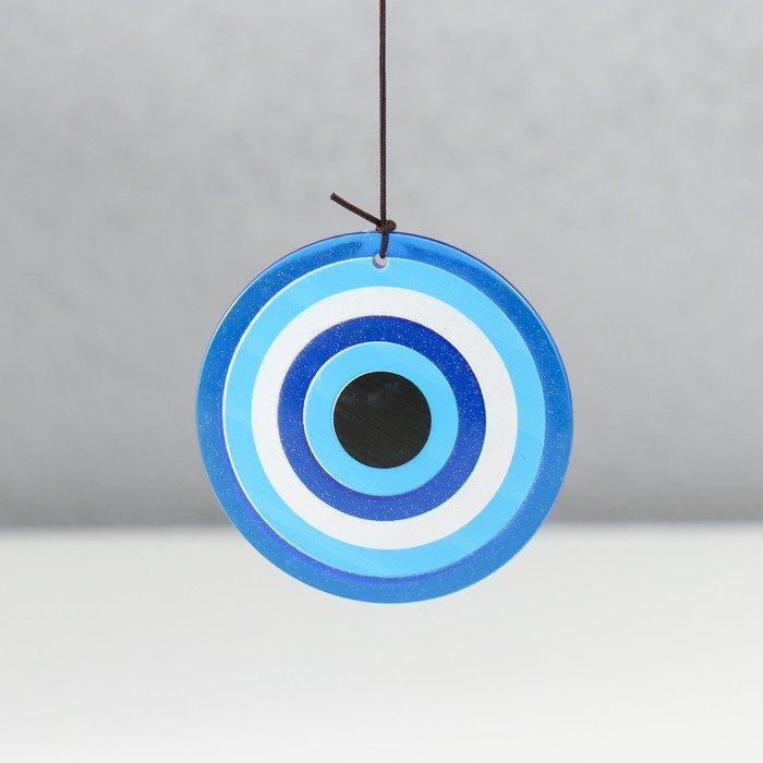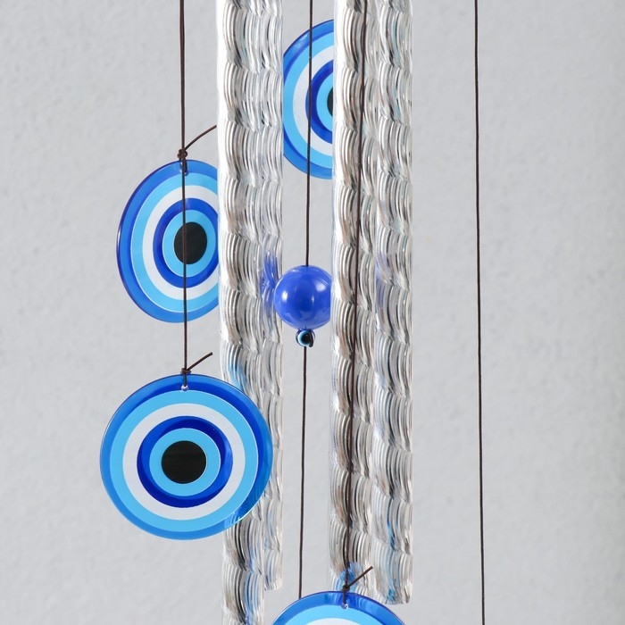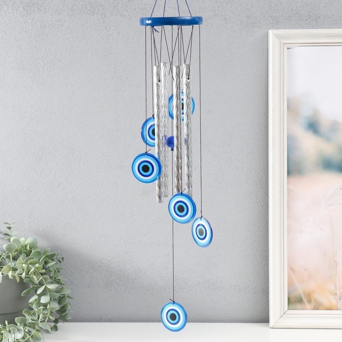 Музыка ветра металл, пластик, дерево "Глазки" от сглаза 4 трубочки h= 47 см, синий