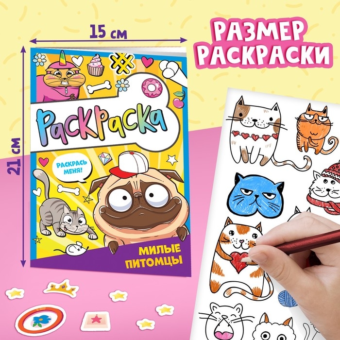 - Раскраска формата A5: 21 × 15 см.