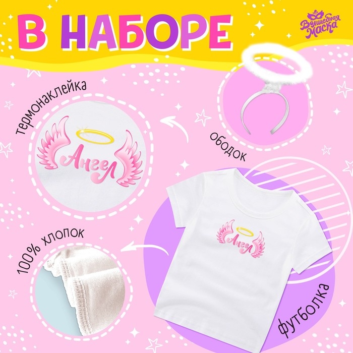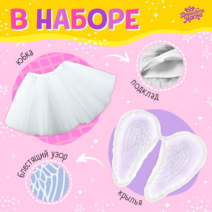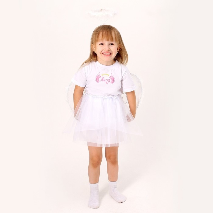 Карнавальный набор «Ангелочек»: футболка, юбка, ободок, крылья, термонаклейка, рост 110–116 см