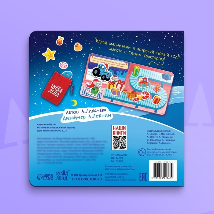 Магнитная книжка, 20 × 20 см, 8 стр., 28 магнитов, Синий трактор