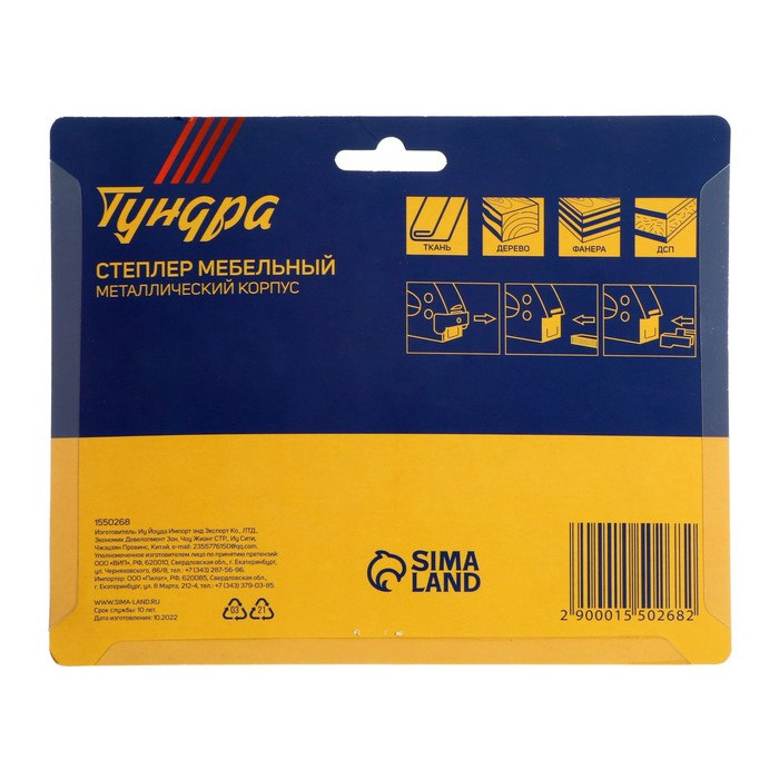 Степлер мебельный ТУНДРА, металлический корпус, тип скоб 53, 4 - 8 мм