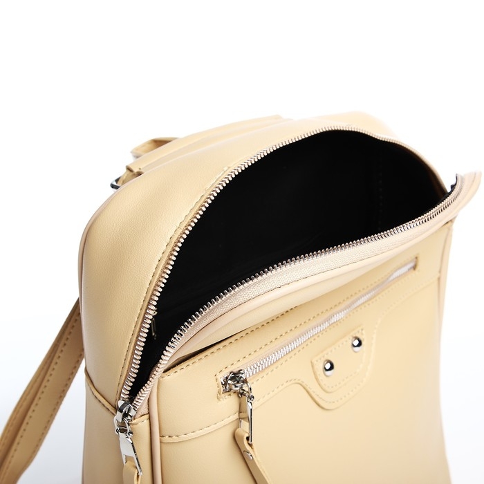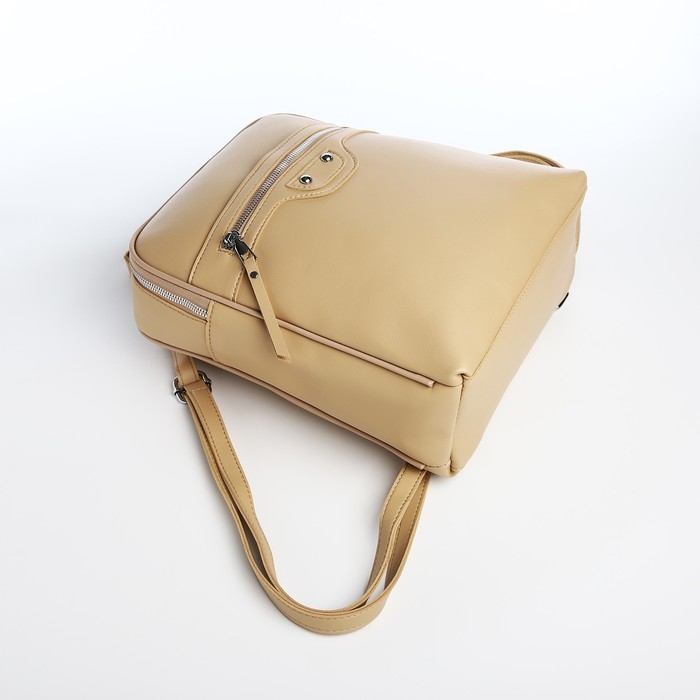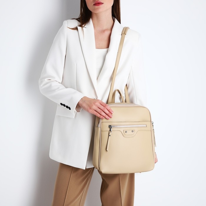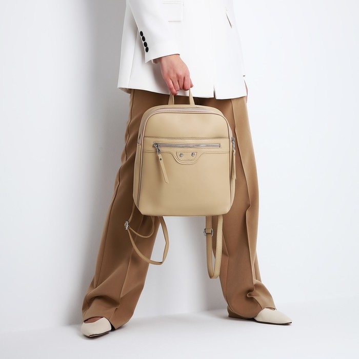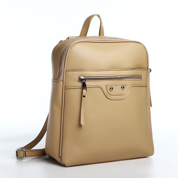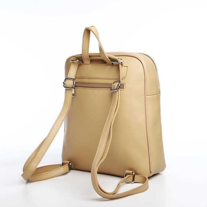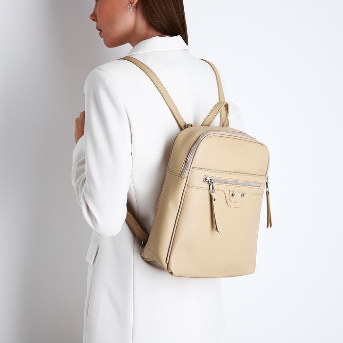 Рюкзак женский из искусственной кожи на молнии, 3 кармана, цвет бежевый
