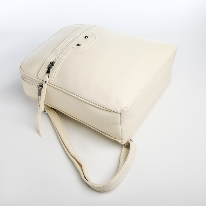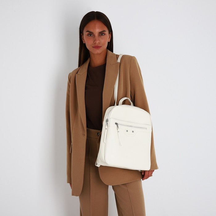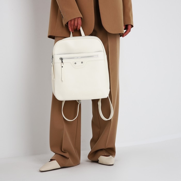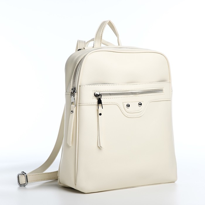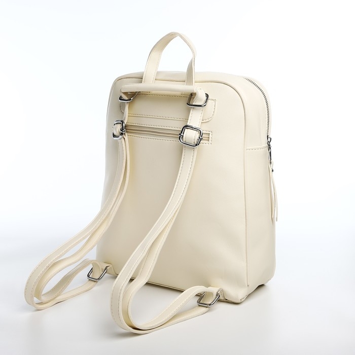 Рюкзак женский из искусственной кожи на молнии, 3 кармана, цвет молочный
