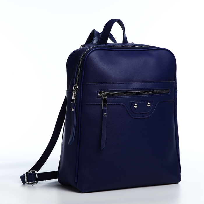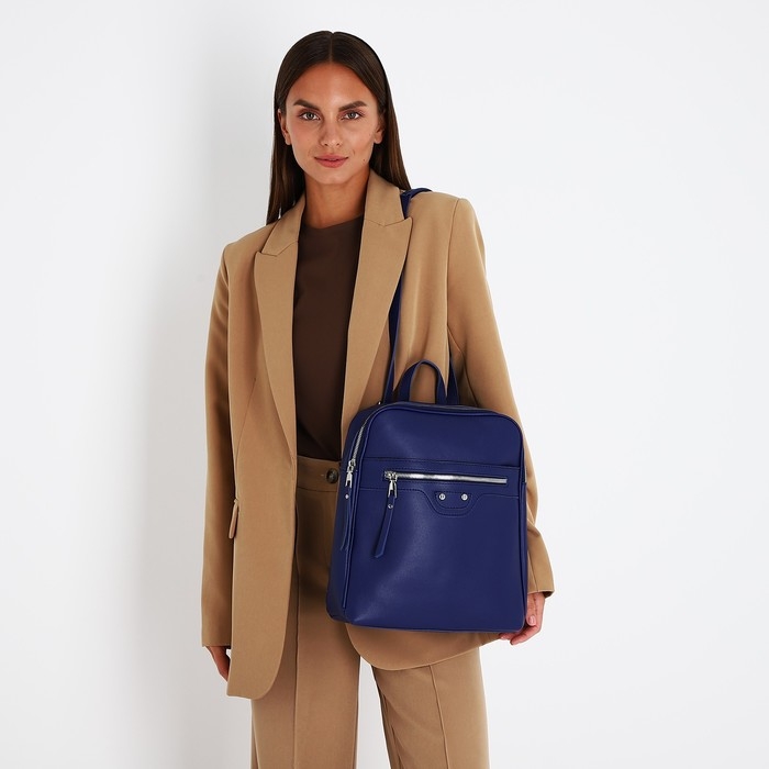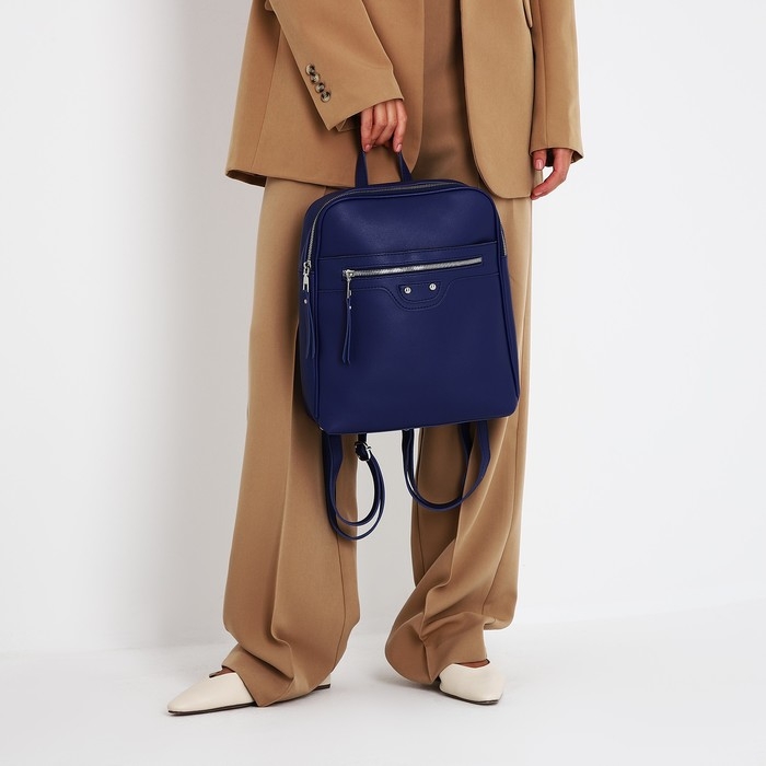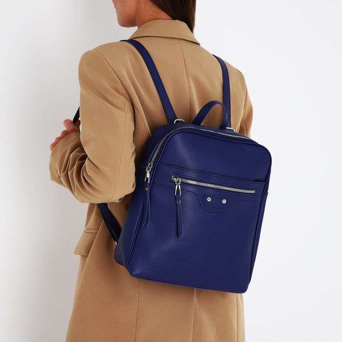 Рюкзак женский из искусственной кожи на молнии, 2 кармана, цвет синий