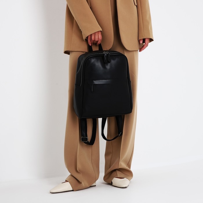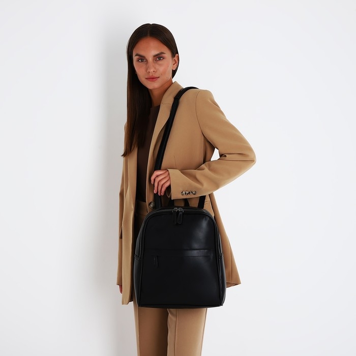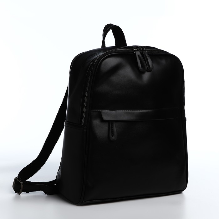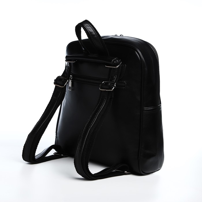 Рюкзак женский из искусственной кожи на молнии, 2 кармана, цвет чёрный