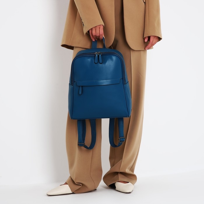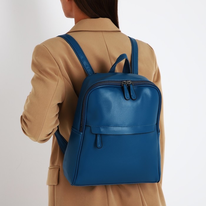 Рюкзак женский из искусственной кожи на молнии, 2 кармана, цвет синий