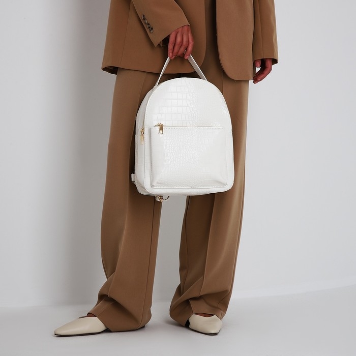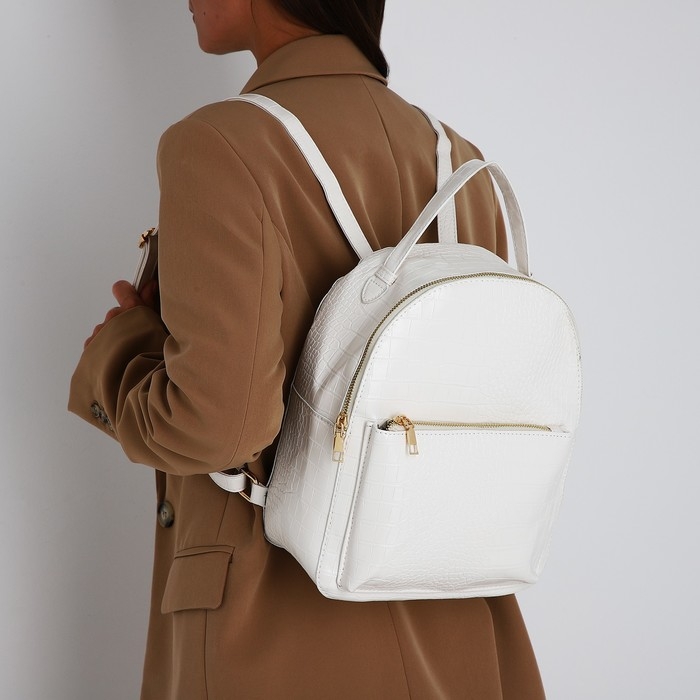 Рюкзак женский из искусственной кожи на молнии, 1 карман, цвет белый