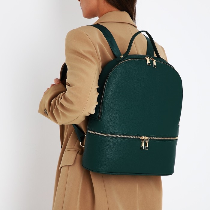 Рюкзак женский из искусственной кожи на молнии, 2 кармана, цвет зелёный