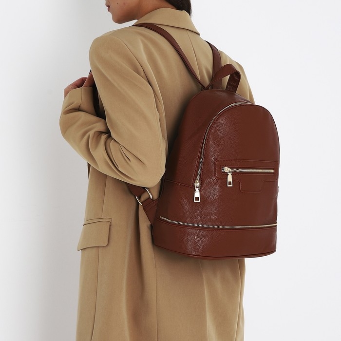 Рюкзак женский из искусственной кожи на молнии, 1 карман, цвет коричневый