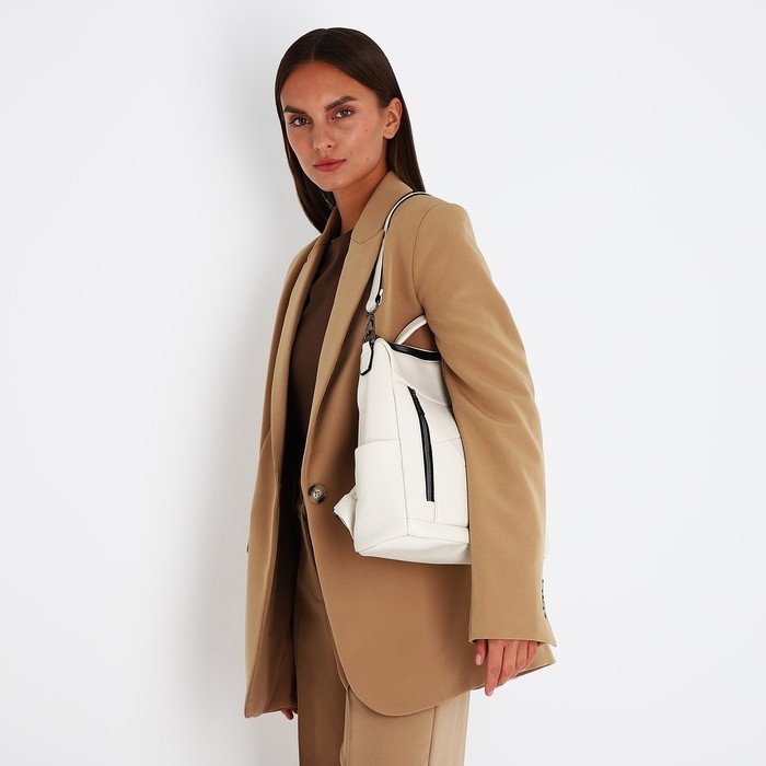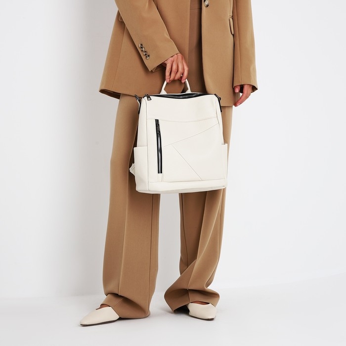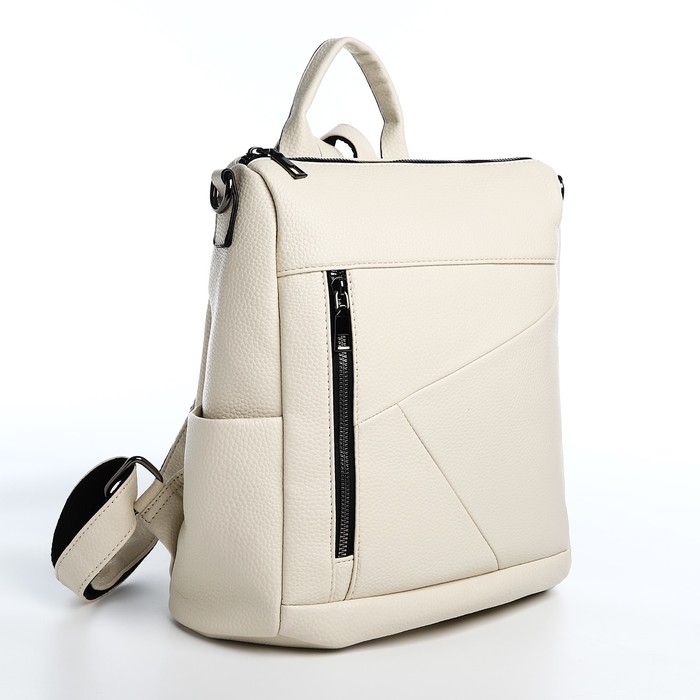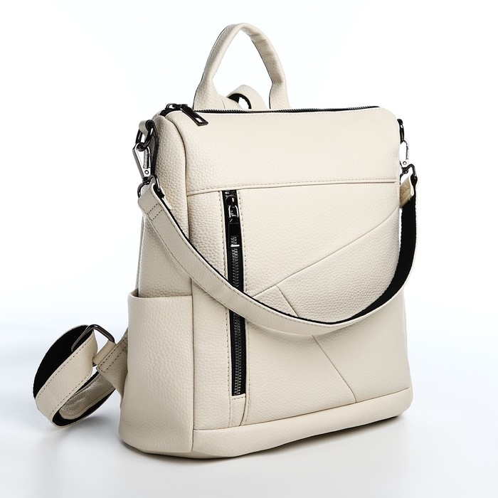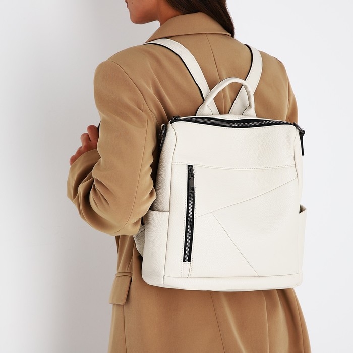 Рюкзак женский из искусственной кожи на молнии, 4 кармана, цвет молочный