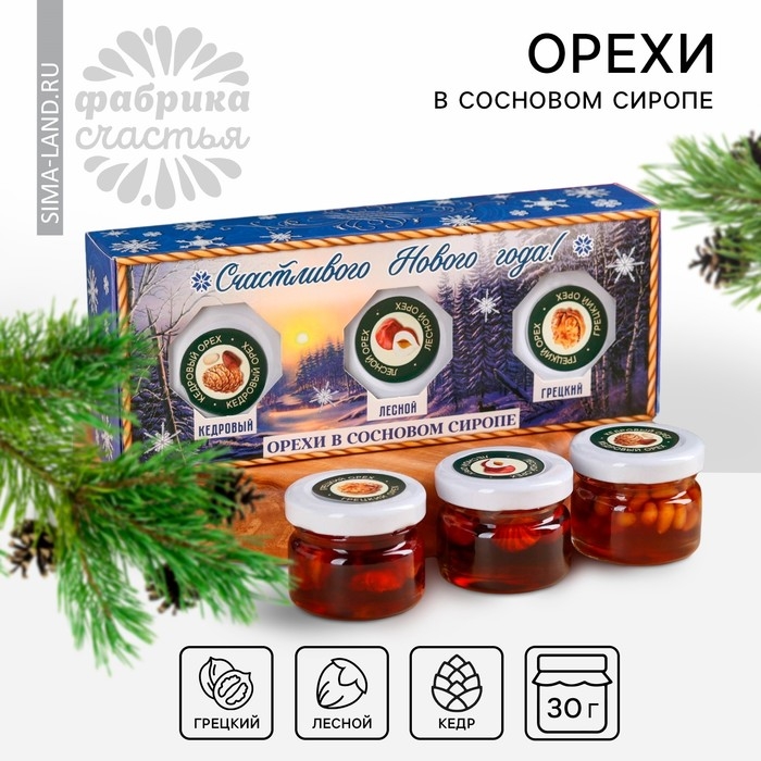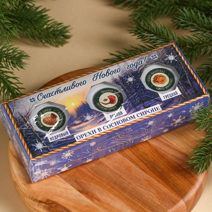 Подарочный набор: «Счастливый новый год» орехи в сосновом сиропе, 90 г (3 шт. х 30 г).
