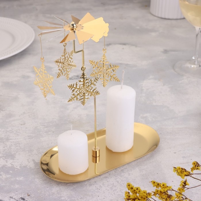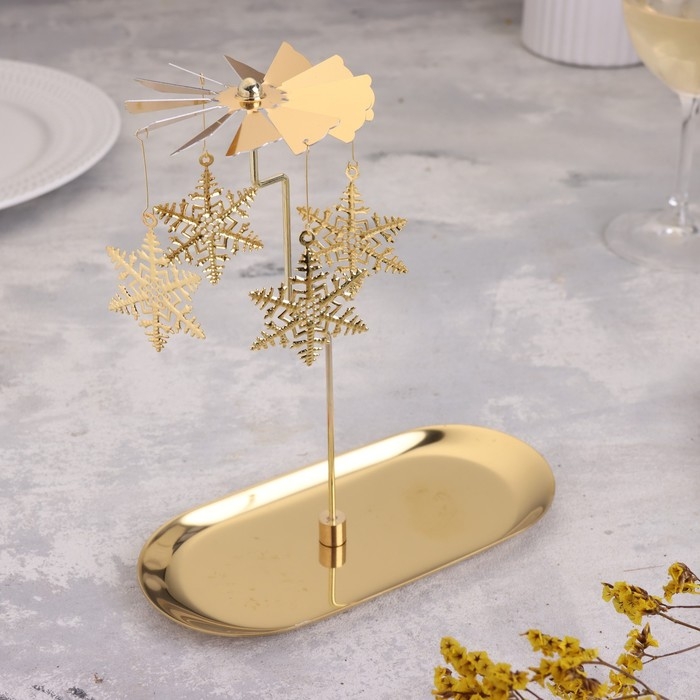 Подсвечник "Карусель со снежинками", золотая, металл, 8,5 х 18 см