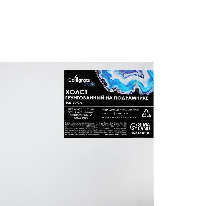 Холст на подрамнике 1,6х80х100 см, хлопок 100%, акриловый грунт, мелкозернистый, 280г/м²