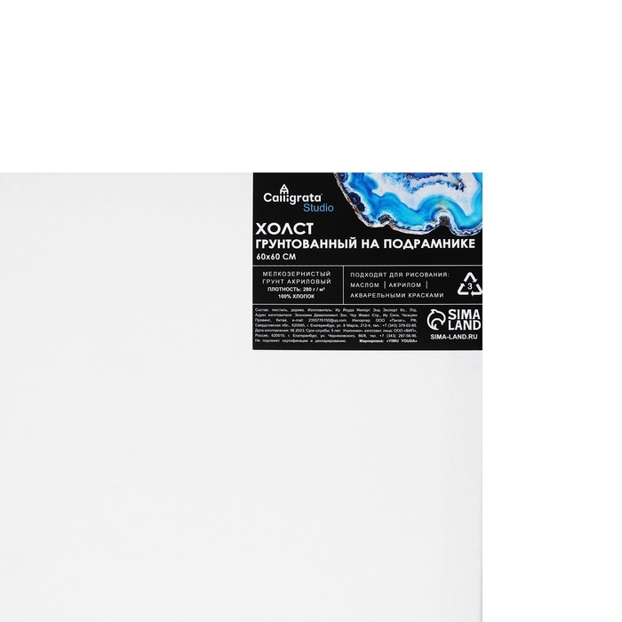 Холст на подрамнике 1.6х60х60 см, хлопок 100%, акриловый грунт, мелкозернистый, 280г/м²