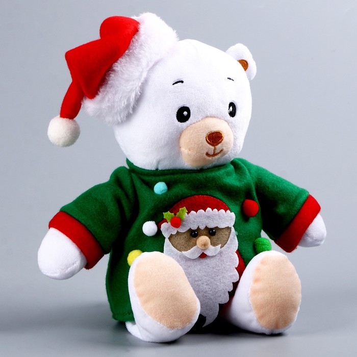 Мягкая игрушка «Мишка Лаппи», новогодняя, в зелёной кофте на липучке, 22 см
