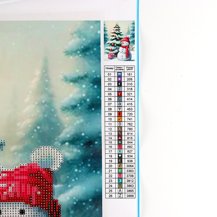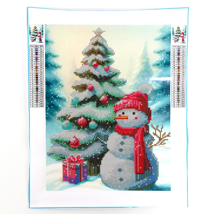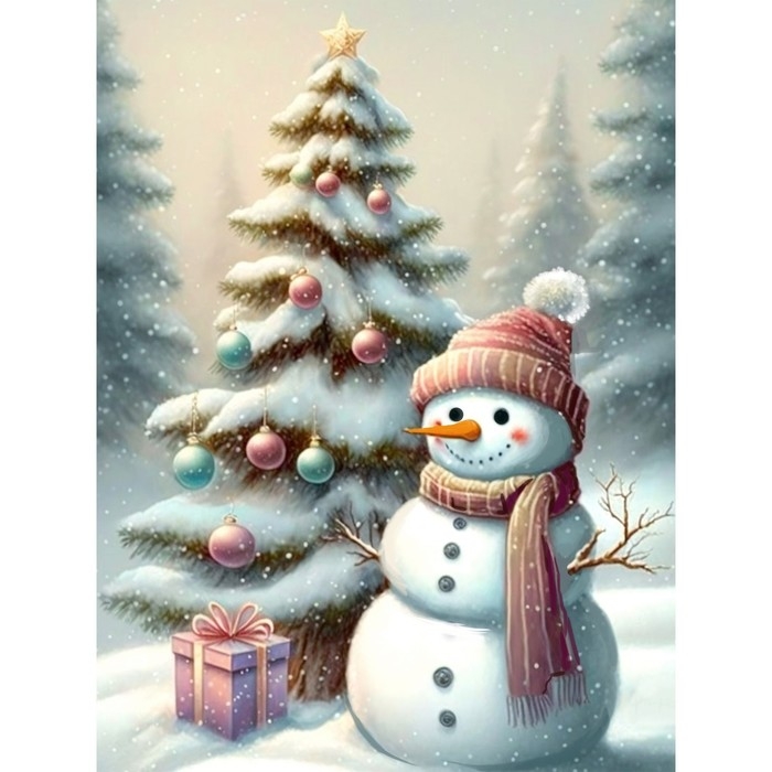 Новогодняя алмазная мозаика с частичным заполнением на холсте «Новый год. Снеговик», 30 х 40 см