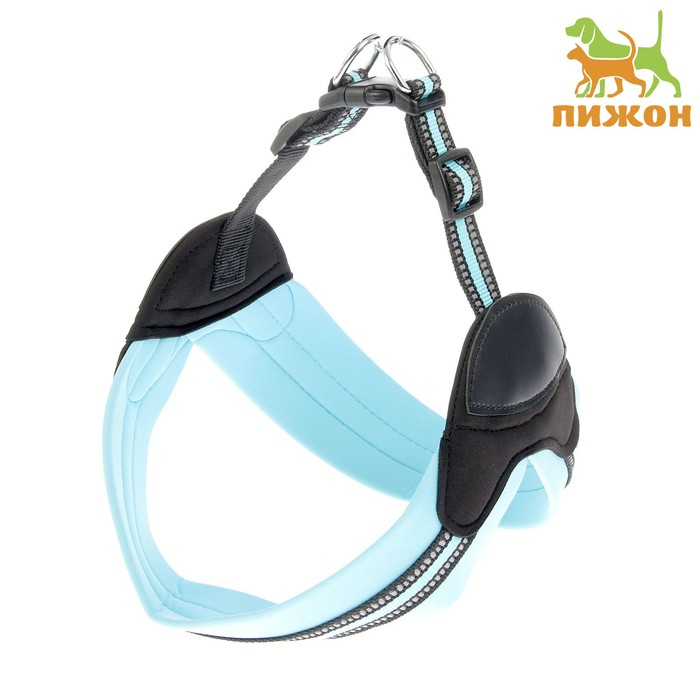Шлейка супермягкая со светоотражающей прошивкой, обхват 62-69 см, голубая