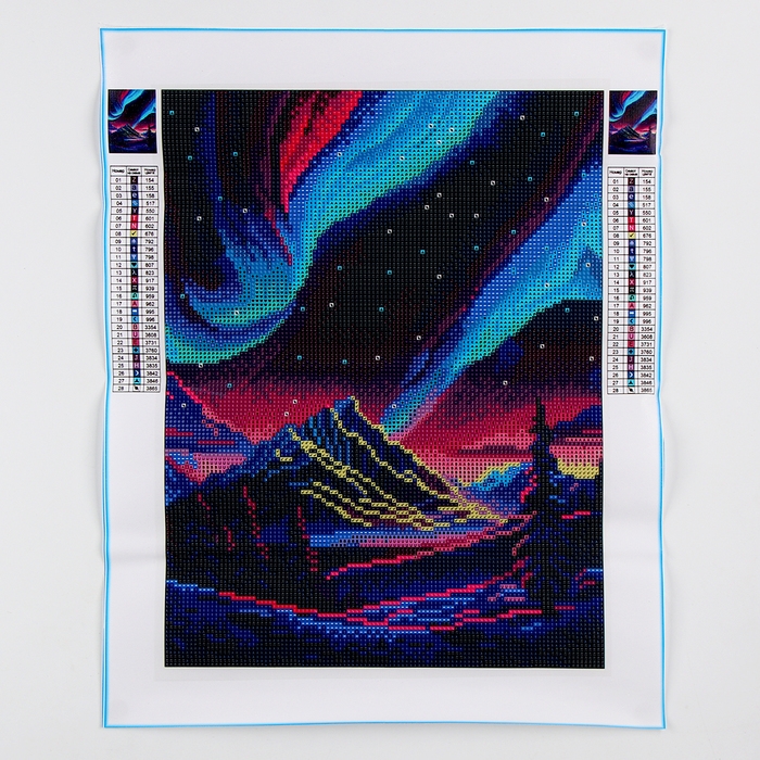 Новогодняя алмазная мозаика с полным заполнением на холсте «Новый год. Северное сияние», 30 х 40 см