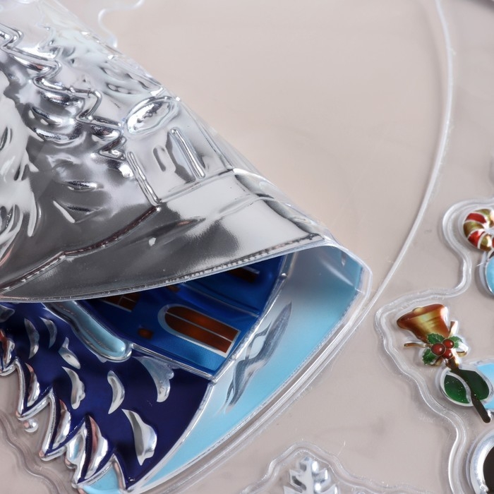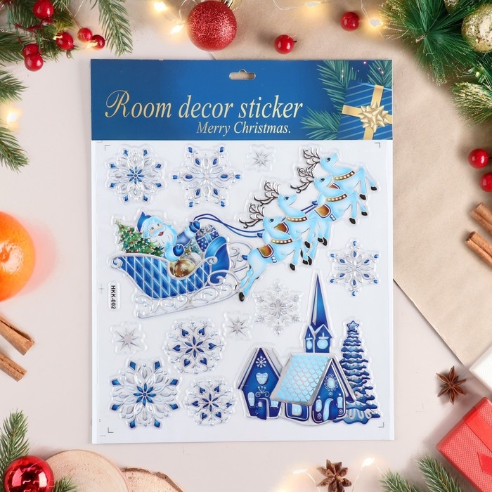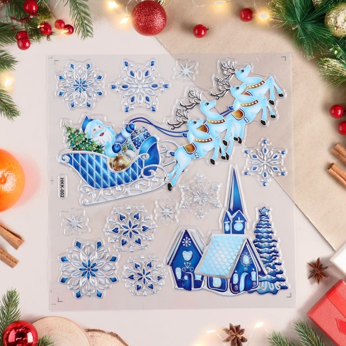 Наклейки на окна "Новогодние" деревня, сани, 38х30 см