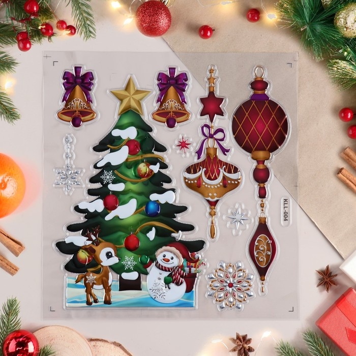 Наклейки на окна "Новогодние" елка, зеленый тон, 38х30 см