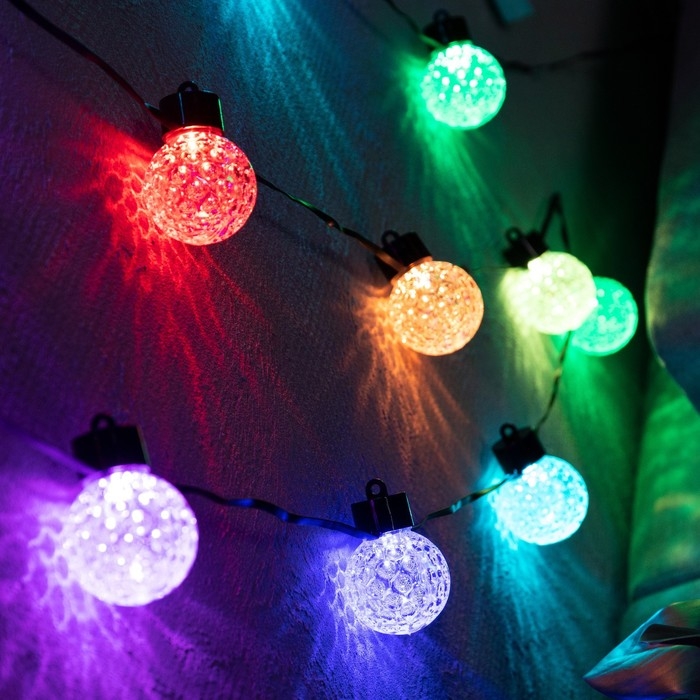 Умная гирлянда «Нить» 6 м с насадками «Пузырьки», IP20, тёмная нить, 20 LED, свечение RGB, USB