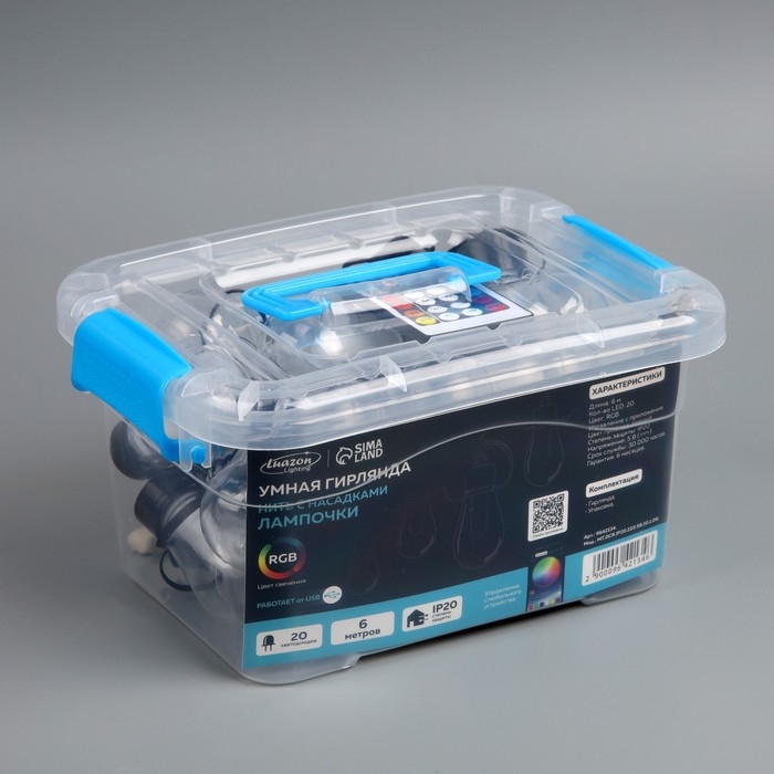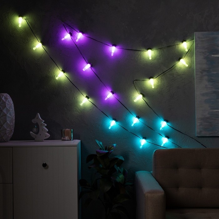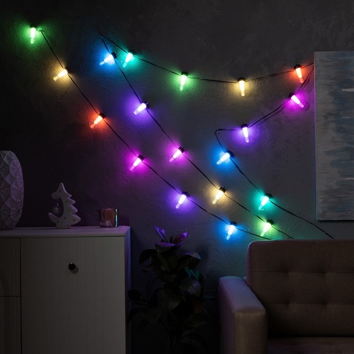 Умная гирлянда «Нить» 6 м с насадками «Лампочки», IP20, тёмная нить, 20 LED, свечение RGB, USB