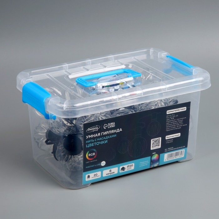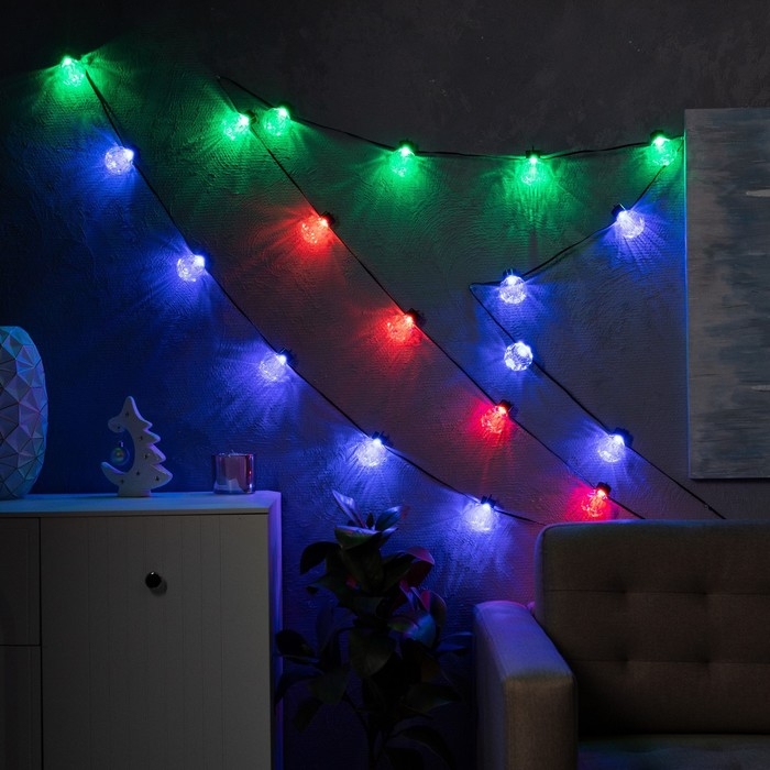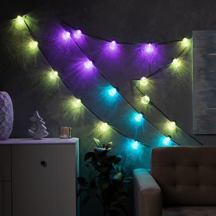 Умная гирлянда «Нить» 6 м с насадками «Рифленые шарики», IP20, тёмная нить, 20 LED, свечение RGB, USB