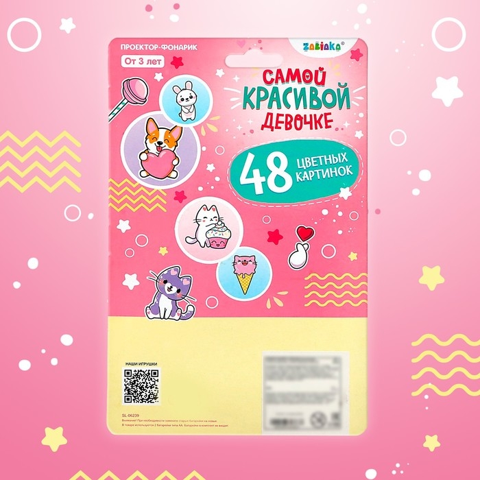 Проектор-фонарик «Самой красивой девочке», свет, цвет розовый