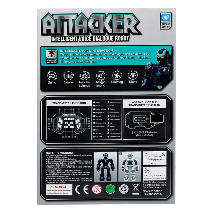 Робот «Атакер», радиоуправление, голосовое управление, свет, звук, с аккумулятором