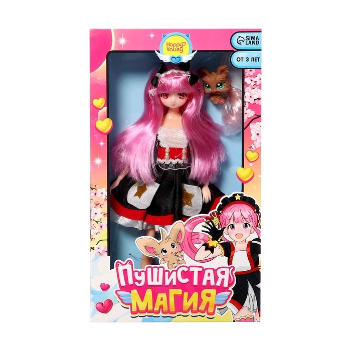 Шарнирная кукла «Пушистая магия» — настоящая мечта для каждой маленькой девочки, которая любит аниме и моду. В комплекте с куклой идёт милый питомец, который станет ей верным другом. Куколка упакована в красочную коробку, поэтому её можно вручить в качестве подарка без дополнительной праздничной упаковки.