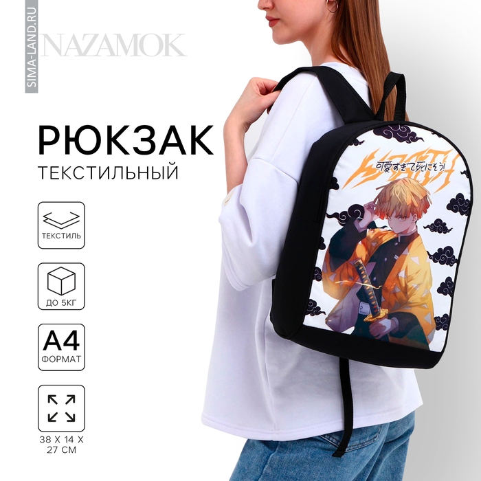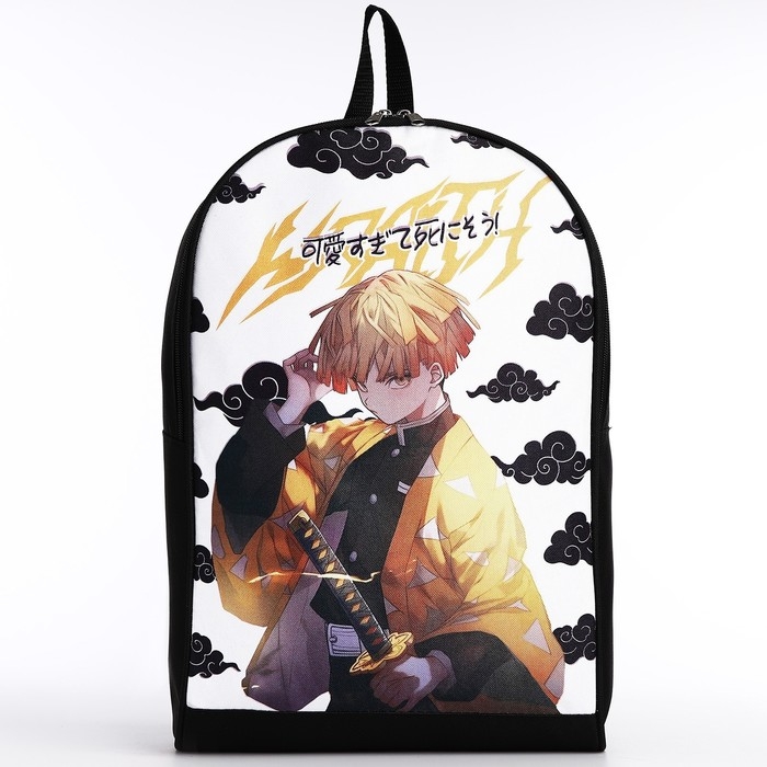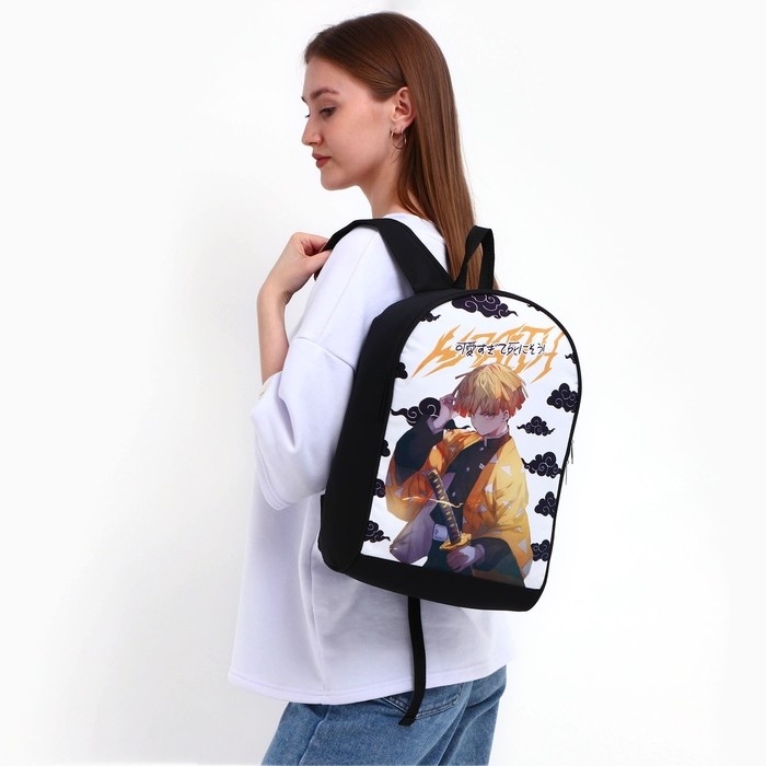 Рюкзак школьный текстильный «Аниме», 38х14х27 см, цвет чёрный, белый