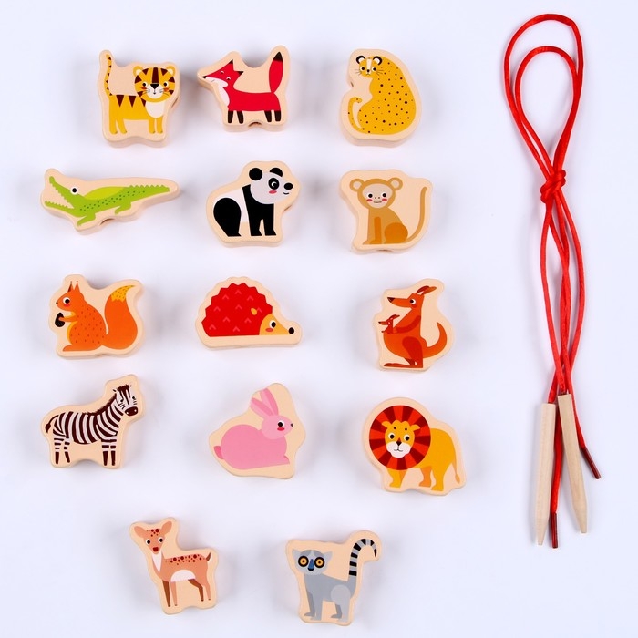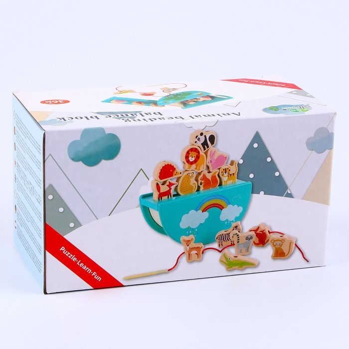 Детская деревянная игрушка 2 в1 балансир + шнуровка «Зверята» 18 × 9,5 × 10 см