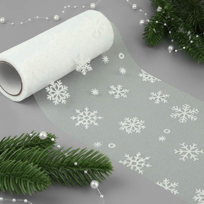 Фатин со снежинками, 15 см, 11 ± 1 г/кв.м, 9,1 ± 0,5 м, цвет белый №1
