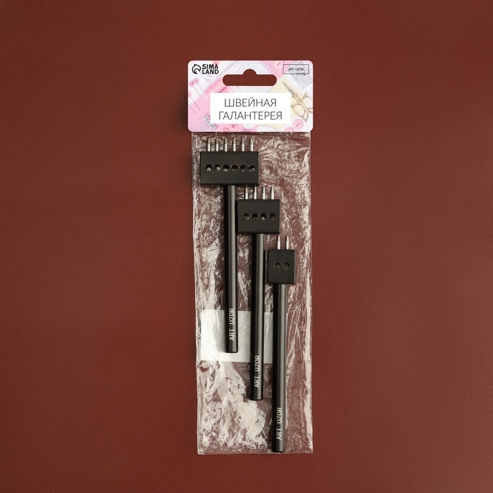 Набор строчных круглых пробойников для кожи, шаг = 5 мм, 3 шт, цвет чёрный