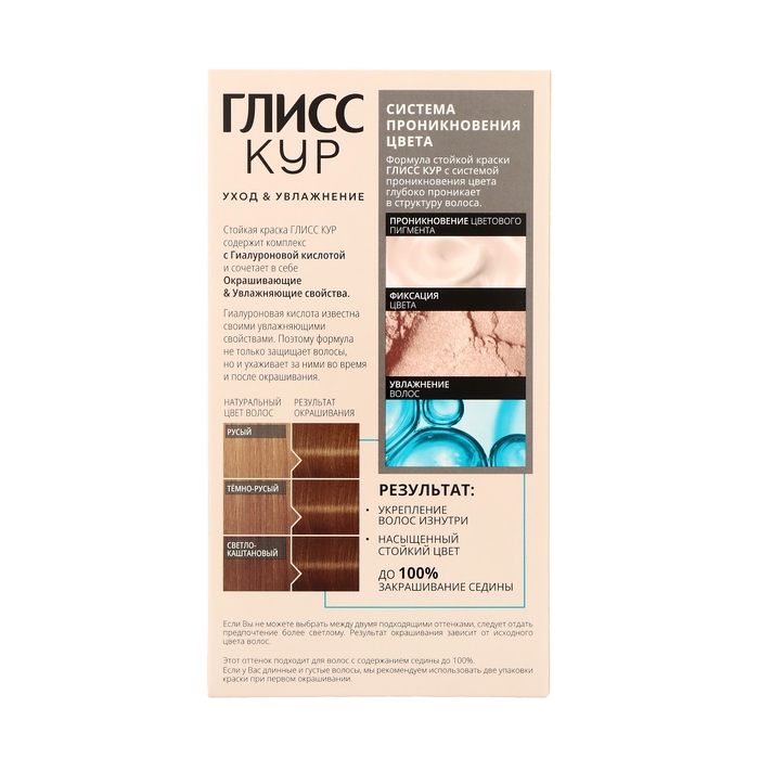 Формула c системой Color Care Delivery глубоко проникает в структуру волоса. Cтойкая краска Gliss Kur c гиалуроновой кислотой, известной своими увлажняющими свойствами, не только защищает волосы, но и ухаживает за ними во время и после окрашивания.