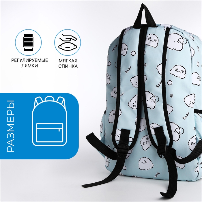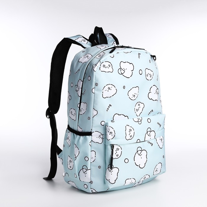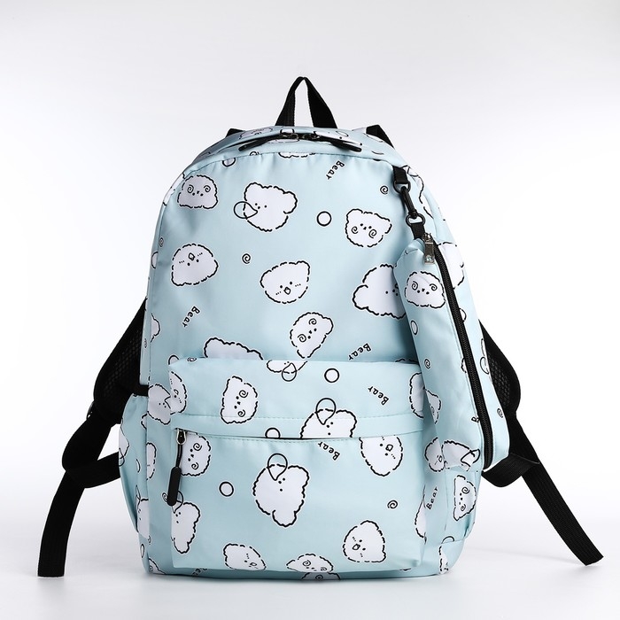 Набор рюкзак школьный из текстиля на молнии, 3 кармана, пенал, цвет бирюзовый