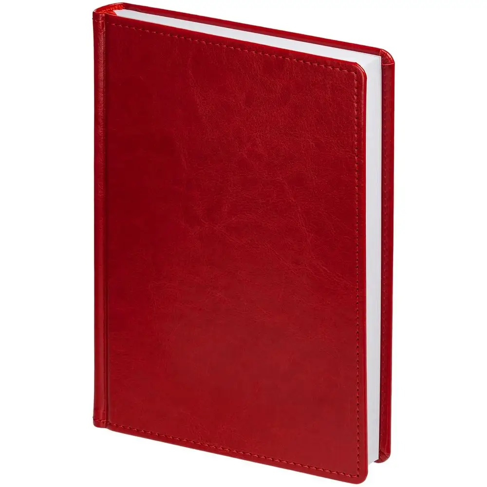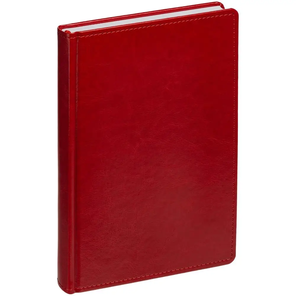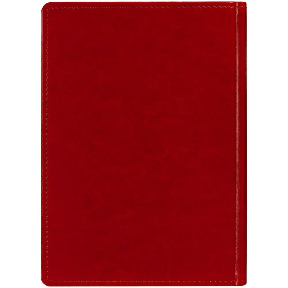 Ежедневник с твердой обложкой без поролона, выполнен из материала Nebraska, красный PP, дополнен ляссе и капталом в цвет обложки.
