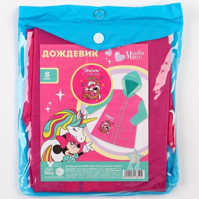 Дождевик детский, размер S, 92-98 см, Минни Маус