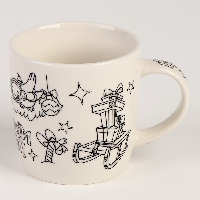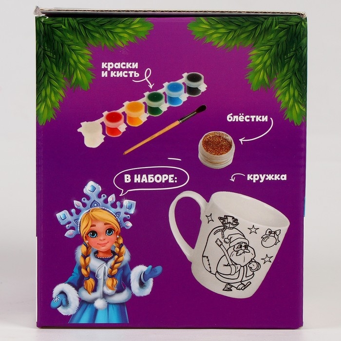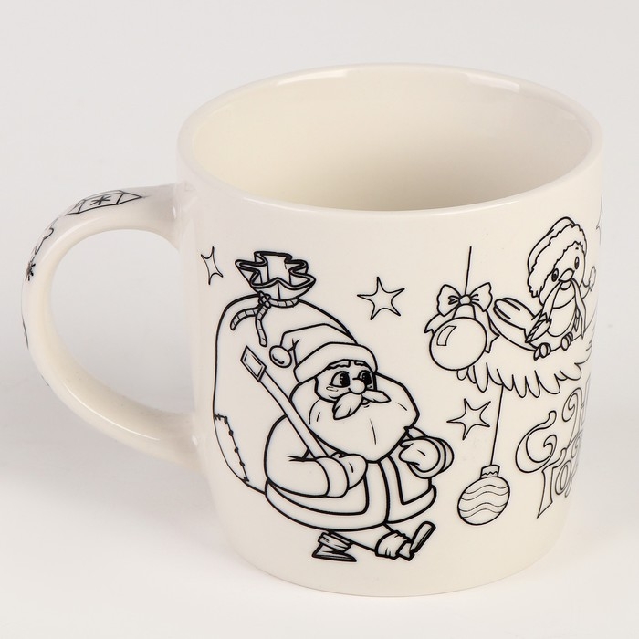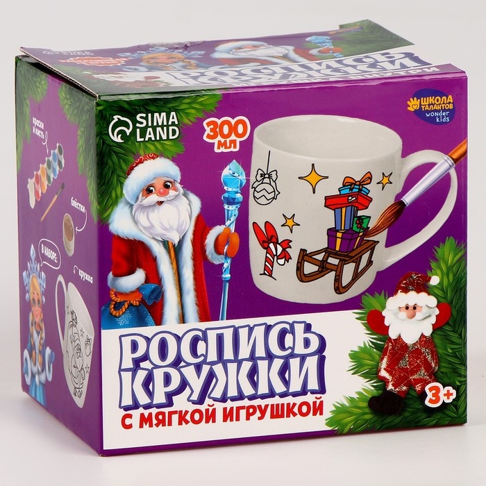 Кружка под раскраску с мягкой игрушкой на новый год «Дедушка мороз», 300 мл, новогодний набор для творчества