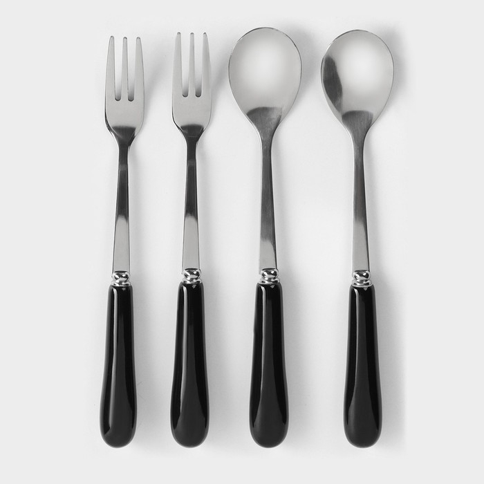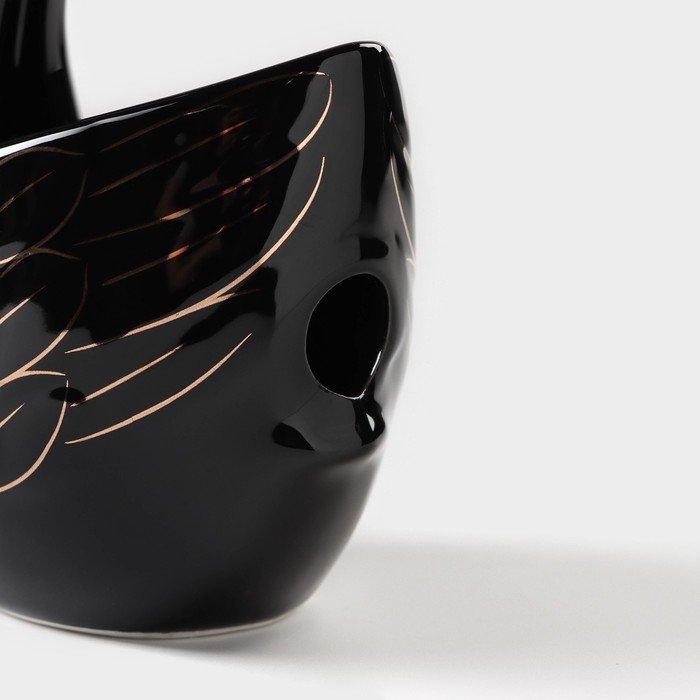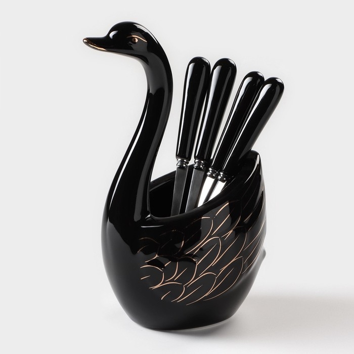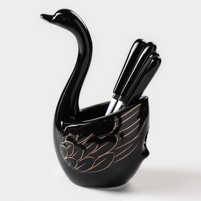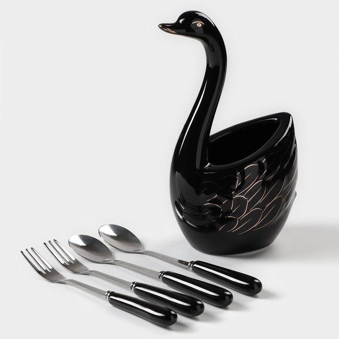 Подставка для столовых приборов «Лебедь», 5 предметов: подставка 9×6,5×16,5 см, 2 ложки, 2 вилки, цвет чёрный